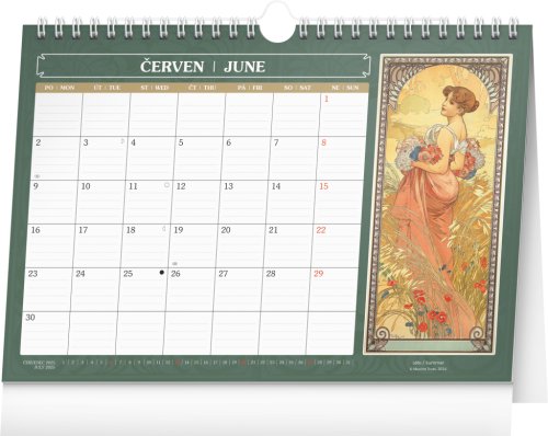 Kalendár 2025 stolný: Alfons Mucha, 30 × 21 cm