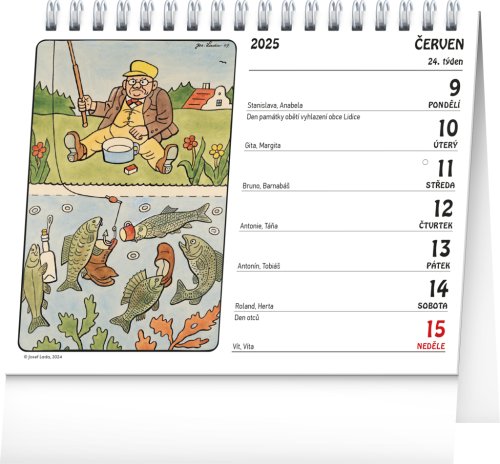 Týždenný stolný kalendár s ľudovými ilustráciami Jozefa Lady je praktickým pomocníkom na každý deň. Kalendár obsahuje jeden obrázok na každý týždeň, kalendárium s českými menami, sviatkami a pamätnými dňami, fázami mesiaca a prehľad na celý rok.