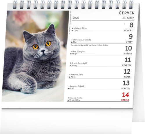 Oslávte sviatok spolu so svojim mačacím parťákom – v tomto praktickom stolnom kalendári nájdete mená mačiek na každý deň. V kalendári nájdete aj dáta medzinárodných výstav mačiek v Čechách podľa FIFe, pekné fotografie a priestor na poznámky.