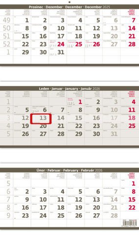 Kalendár nástenný 2026 - Trojmesačný skladaný šedý