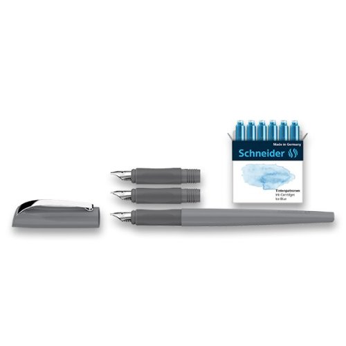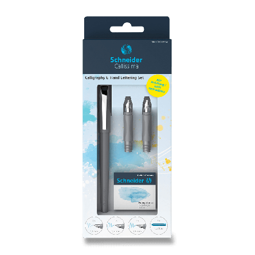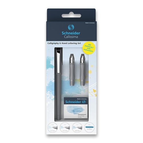 Súprava obsahuje:, * 1 x kaligrafické pero s hrotom 1,1 mm, * náhradné hrotové časti v šírkach 1,5 a 1,8 mm, * 1 x balenie 6 ks atramentových bombičiek v modrej farbe, * informačný leták sprievodca písaním