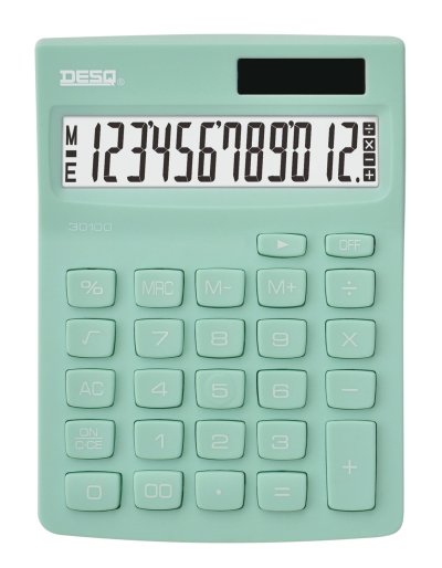 - Stolová kalkulačka v mätovej farbe - 12 miestny LCD displej - Funkcia Backspace, tlačidlo s dvojitou nulou - Tlačidlá pre výpočet percent a odmocniny - Trojciferná interpunkcia - 3 tlačidlová pamäť - …