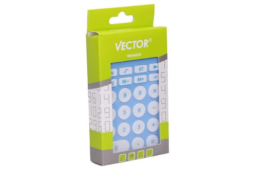 Kalkulačka simple VECTOR. Rozmer kalkulačky: 8,5 x 13,5 cm. Súčasťou boxu 1 x AAA batérie. 2 farebné prevedenie: biela, modrá.