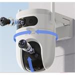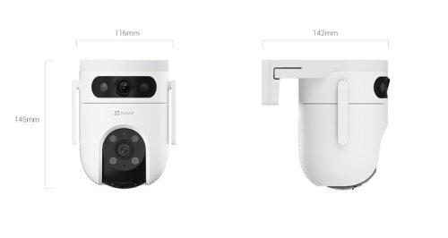 Zaobstarajte si vodeodolnú vonkajšiu otočnú IP kameru EZVIZ H9c Dual 3K. Duálny objektív kombinuje 5MP snímač , širokouhlý objektív 2,8 mm s horizontálnym pozorovacím uhlom 110° a otočný objektív 6 mm s uhlom 56°. Vďaka farebnému nočnému videniu s IR prísvitom do vzdialenosti 30 ma bielym LED svetlom poskytuje detailné záznamy aj za zníženej viditeľnosti. Veľkou výhodou je aj možnosť obojsmernej komunikácie a kompatibilita s hlasovými asistentmi Google Assistant a Amazon Alexa. Kameru napájate pomocou adaptéra DC 12 V/1,5 A, zatiaľ čo pripojenie k sieti zaisťuje LAN port alebo 2,4 GHz Wi-Fi . Všetky záznamy sa ukladajú na microSD kartu s kapacitou až 512 GB (treba dokúpiť) alebo na úložisko Ezviz Cloud.