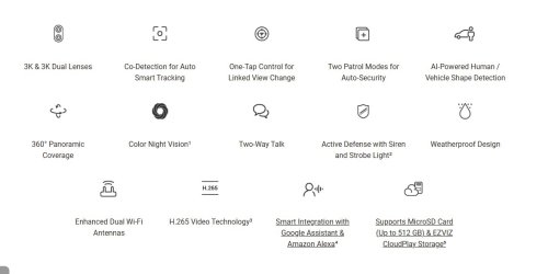 Vďaka technológii duálnych objektívov poskytuje EZVIZ H9c 3K bezkonkurenčné zabezpečenie. Horný širokouhlý objektív monitoruje celú oblasť, zatiaľ čo otočný teleobjektív sa zameriava na dôležité detaily. Obaja môžu pracovať spoločne aj nezávisle na sebe. Pokročilé AI algoritmy umožňujú detekciu a automatické sledovanie osôb i vozidiel , čím výrazne zvyšujú bezpečnosť vášho domova alebo firmy. V prípade detekcie narušenia kamera spustí zvukový alarm a blikajúce svetlo .