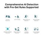 Kamera TP-Link vás informuje o všetkých nezvyčajných udalostiach, ktoré sníma. Zašle vám oznámenie v prípade, že zaznamená neoprávnené vniknutie na pozemok, prekročenie vami nastavenej hranice, vstup do chránenej oblasti, opustenie oblasti, opustený predmet alebo naopak odnesený predmet . Vďaka vášmu nastaveniu znížite počet falošných poplachov. Kameru spravujete pomocou webového rozhrania, užívateľského rozhrania NVR rekordéra, aplikácie VIGI či softvéru VIGI Security Manager .