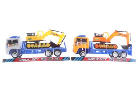 Plastový kamión s bagrom o rozmere cca 25 x 12,5 x 8 cm. Rozmer balenia cca 27 x 13 x 9,5 cm. Vek 3+