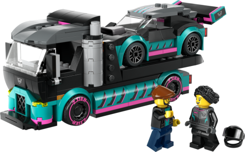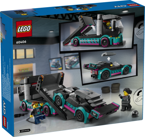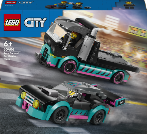 Vyrazte do akcie so stavebnicou LEGO® City (60406) Kamión so závodným autom, ktorý predstavuje perfektný darček pre malých milovníkov áut a kamiónov. Sada je určená pre deti od 6 rokov a nájdete v nej závodný kamión s funkčnou nakladacou rampou a parádne závodné auto so zníženým podvozkom a rozšírenými nárazníkmi. Nechýba ani minifigúrka vodiča nákladiaku a závodného jazdca, s ktorými vás čakajú hodiny dobrodružstva a zábavy.