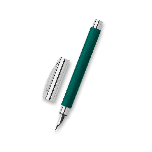 Plniace pero Faber-Castell Ambition Precious Resin Soft Teal má telo zo vzácnej brúsenej živice v kombinácii s doplnkami z pochrómovaného lešteného kovu.