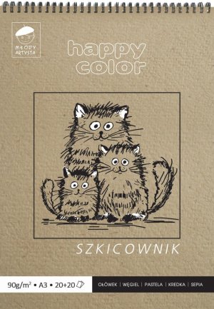 Špirálový skicár s tvrdými doskami obsahuje dva druhy papierov - jemne zrnitý prírodne biely s gramážou 90g/m2 a ľahko drsnejší okrový papier s gramážou 80g/m2.