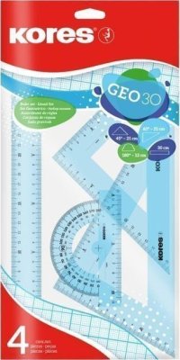 Sada geometrie - 4 kusy • vyrobené z plastu • s okrajom atramentu pre čisté línie • s poľom názvu pre označenie • Tlač v čistom meradle v čiernej farbe • v závesnom obale • Rôzne vo farbách: svetlo modrá a svetlo …