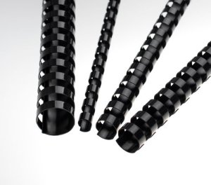 plastový chrbát na väzbu dokumentov priemer 14 mm kapacita 81 – 100 listov 80 g/m2 formát A4 21 otvorov farba čierna balenie 100 ks