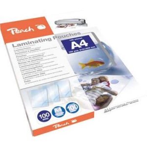 Peach Laminovacie fólie A4, 100mic, lesklé, 100ks 100 ks lesklých laminovacích fólií (vrecko) s hrúbkou 100 µm, určených na laminovanie dokumentov veľkosti A4.