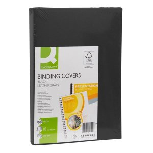 Obálka z 250 g/m2 kartónu Pre plastové aj drôtené chrbty Balenie 100 ks Formát: A4 Gramáž: 250 g/m2 Prevedenie: dizajn kože Farba: čierna