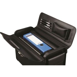 Obchodný kufor z umelej kože s kovovými prvkami 2 číselné zámky s dvojitým uzáverom V uzatváracej klope vrecko na zips a pútka na písacie potreby 1 vonkajšie vrecko