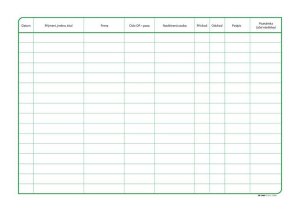 Kniha návštev - nepropisujúce tlačivo - nečíslovaný - formát A4 na šírku - zelená obálka - blok 32 listov Formát A4 Samoprepisovací: Nie Číslovaný: Nie Počet listov: 32