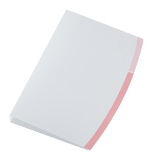 inkovaný notes v pevných doskách s uzatváraním na gumičku, vreckom na drobnosti a pútkom na ceruzku. 172 strán na žltom papieri.