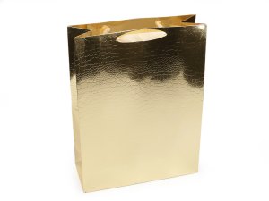 Darčeková taška s efektným metalickým povrchom so štruktúrou krokodílej kože sa hodí na luxusné zabalenie veľkého darčeka.