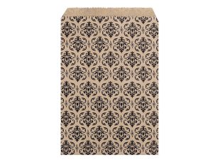 Papierové vrecko s ozdobnou potlačou je štýlový pomocník pri balení darčekov alebo tovaru v obchode.