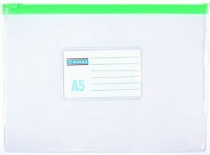 Obálka formátu A5 s plastovým zipsom vhodná na organizáciu a ochranu drobných dokladov.