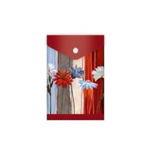 Obálka v tvare listovej kabelky na dokumenty s veselým motívom.