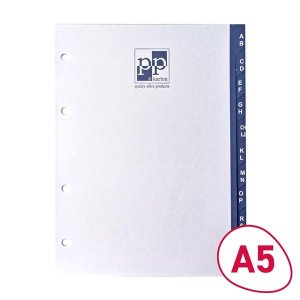Abecedné papierové rozlišovače AZ vo formáte A5, ktoré vám uľahčia organizáciu a rýchle vyhľadávanie vo vašich dokumentoch Sada je rozdelená po dvoch písmenách na každý list a zaisťuje rýchly prístup k …
