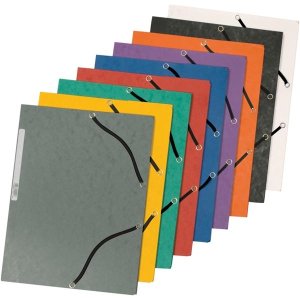 Kvalitné 3klopové dosky na uloženie a prenos dokumentov v jemných farbách s fi xáciou dvoma čiernymi gumičkami.