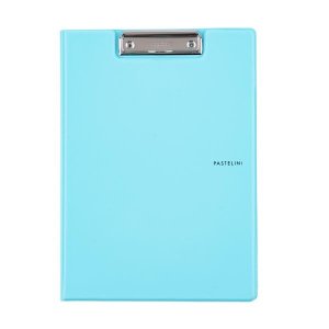 Plastová písacia podložka v moderných pastelových farbách, otváracia s kovovým klipom.
