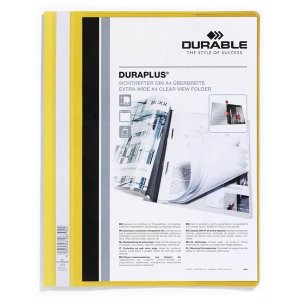 PVC dosky s rýchloviazačom, priehľadným predným vreckom na vloženie letáku a pevnou zadnou stranou.