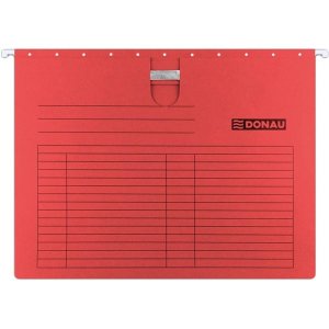 Závesné dosky s bočnicami pre dokumenty do formátu A4 Gramáž 230 g/m2 Závesná lišta z kovu pre dlhšiu životnosť Kapacita: 400 listov A4 80 g/m2 Farba: červená 5 ks v balení Certifikácia: DerGrünePunkt