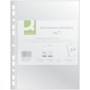 Prospektové závesné obaly Q-Connect Typ U - otvorené zhora Vnútorné rozmery: 21,2 x 30,2 cm Vonkajšie rozmery: 23,0 x 30,5 cm Hrúbka: 75 mikrónov Prevedenie: lesklé Formát: A4 Balenie obsahuje 100 ks