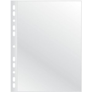 Vyrobené z mäkkej a hladkej polypropylénovej fólie s hrúbkou 50 mikrónov Zosilnená hrana Lesklé, transparentné Antistatické Vhodné pre dokumenty A4 Počet dier: 11 Rozmery: 230 x 305 mm Balenie: 100 ks