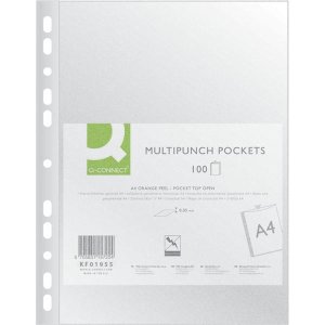 Polypropylénové obaly Q-Connect Číre, krupičkový povrch Horné a bočné otváranie s otvorom pre palec vyrezaným na otvorenom okraji pre ľahké vyhľadávanie dokumentov Hrúbka: 90 mikrónov Formát: A4 Počet …