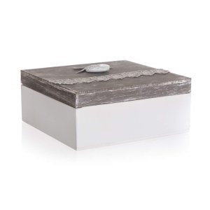 Krabička malá s čipkou LACEWORK, štvorec opatrená praktickým vekom je praktický pomocník na ukladanie najrôznejších drobností a súčasne ju využijete na dekorovanie bytu.