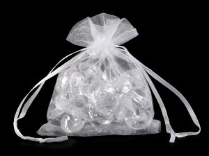 Darčekové organzové vrecúško sa sťahuje pomocou stuhy vo farbe organzy.