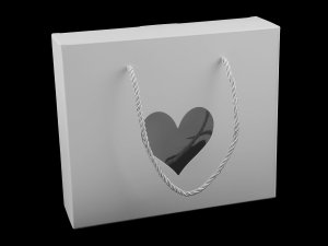 Papierová krabica má vo veku výrez v tvare dvoch sŕdc.