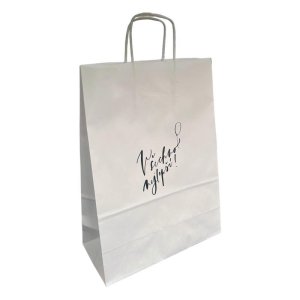 Jednoduchá darčeková taška v prírodnej farbe je kvalitná, vyrobená z pevnejšieho papiera.