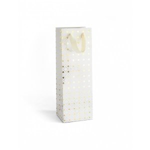 Papierová dekoratívna darčeková taška na víno, rýchly pomocník pri balení vašich darčekov Rozmery: veľkosť XL - 35 x 10 x 12 cm Farba: biela Motív: zlatý metalický geometrický vzor Počet ks v balení: 5 ks
