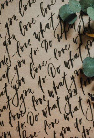 Be Nice EKO baliaci papier písmo s citátom do what you love - love what you do na hnedom papieri.