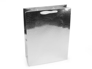 Darčeková taška s efektným metalickým povrchom so štruktúrou krokodílej kože sa hodí na luxusné zabalenie veľkého darčeka.