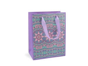 Darčeková taška s motívom mandál je vyrobená z kvalitného pevného kriedového papiera.