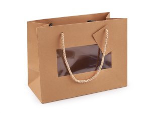 Jednoduchá darčeková taška v prírodnej farbe je kvalitná, vyrobená z pevnejšieho papiera.