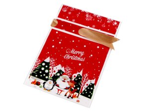 Sťahovacie vrecká s vianočnými motívmi oceníte na [na darčekové balenie rôznych balených pochutín, ale tiež napríklad kozmetiky, sviečok a iných maličkostí.] Sťahujú sa pomocou saténovej stuhy.