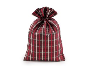 Vrecko s vianočným motívom sa sťahuje pomocou saténových šnúrok.