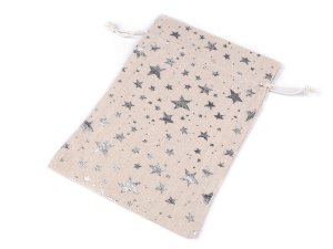 Darčekové vrecúško s metalickou potlačou hviezd poslúži na zabalenie malých darčekov, ale môže byť aj krásnou dekoráciou na Vianoce.