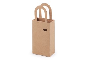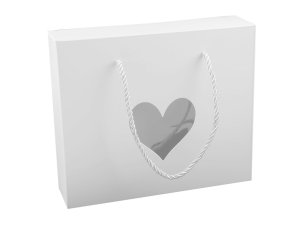 Papierová krabička v tvare taštičky má na prednej strane malý výrez v tvare srdiečka.