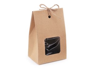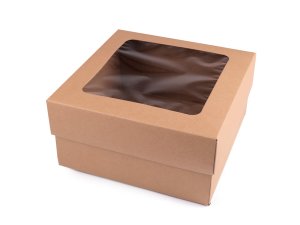 Papierová krabica natural má výrez vo veku s priehľadnou fóliou.