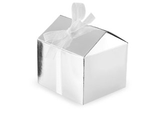 Darčeková krabička domček s lesklým metalickým povrchom poteší každého obdarovaného.