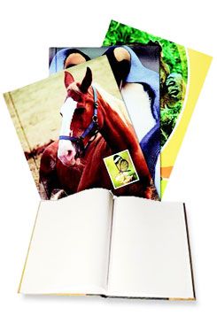 Zápisník s mäkkou, v chrbte šitou väzbou v kartónových doskách, obopnutý pružnou páskou proti samovoľnému otváraniu.