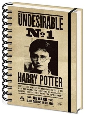 Linkovaný zápisník s postavou zo sveta Harryho Pottera. 120 strán, na každej stránke je v rohu obrázok predmetu spojeného s postavou.
